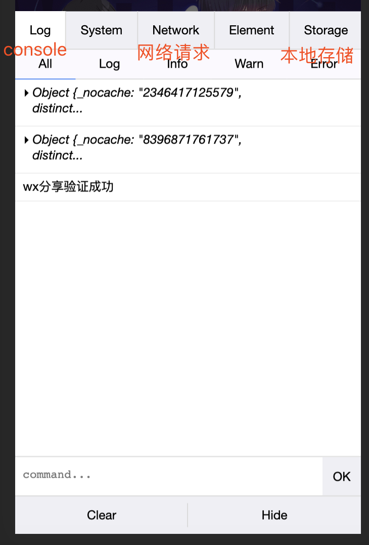有腾讯开发的开源插件。支持console和网络请求,本地存储等查看。基本能满足日常的开发。